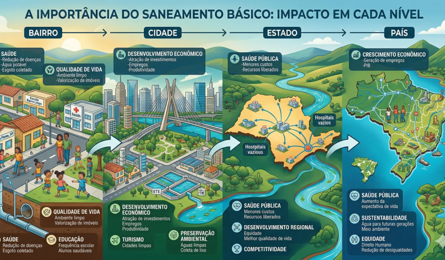A importância do saneamento básico para o bairro, para a cidade, para o estado e para o país