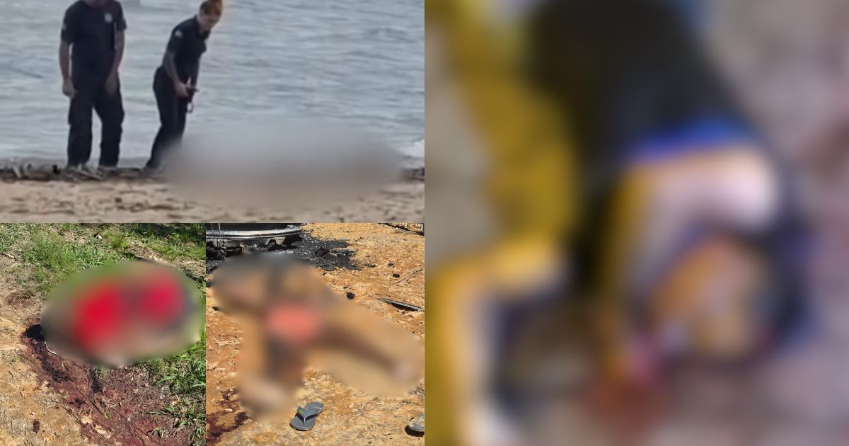 Próximo aos corpos, havia um veículo completamente carbonizado, possivelmente pertencente a Patrick, que estava desaparecido e procurado por familiares.