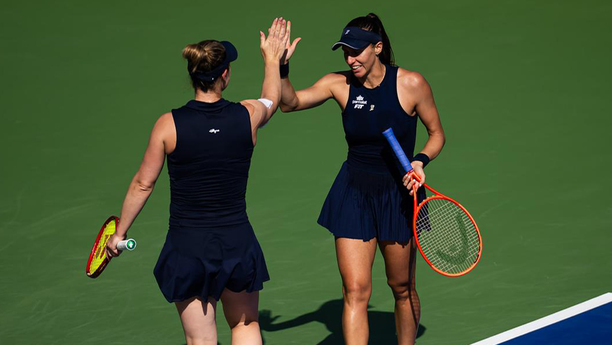 Atuando na quadra 3 do complexo, a dupla formada pela brasileira, que ocupa a 10ª posição no ranking mundial, e pela canadense, vencedoras do torneio 1000 de Dubai e semifinalistas do Australian Open e de Doha, derrotaram a tcheca Linda Noskova e a russa Diana Shnaider por 2 sets a 0, com parciais de 6/3 6/1, em apenas 1h02min de partida.